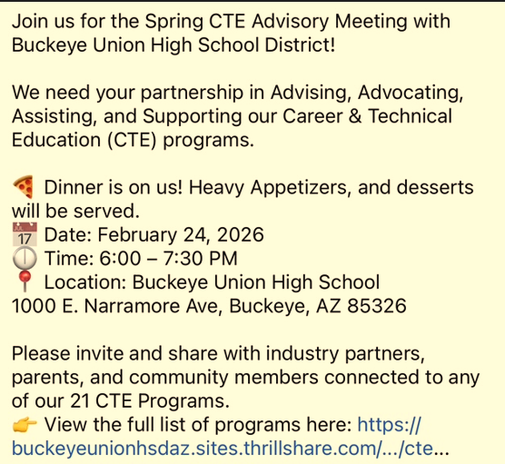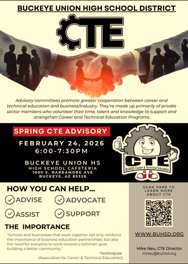 BUHSD CTE - Spring CTE Advisory Meeting - Buckeye Union High School Cafeteria - 1000 E. Narramore