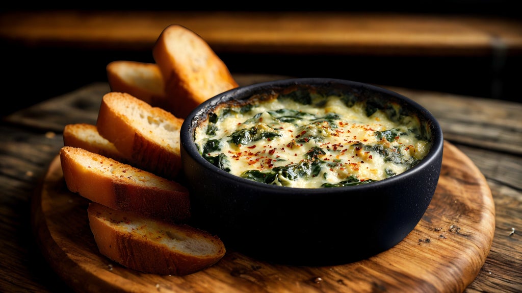 Hot spinach artichoke dip served