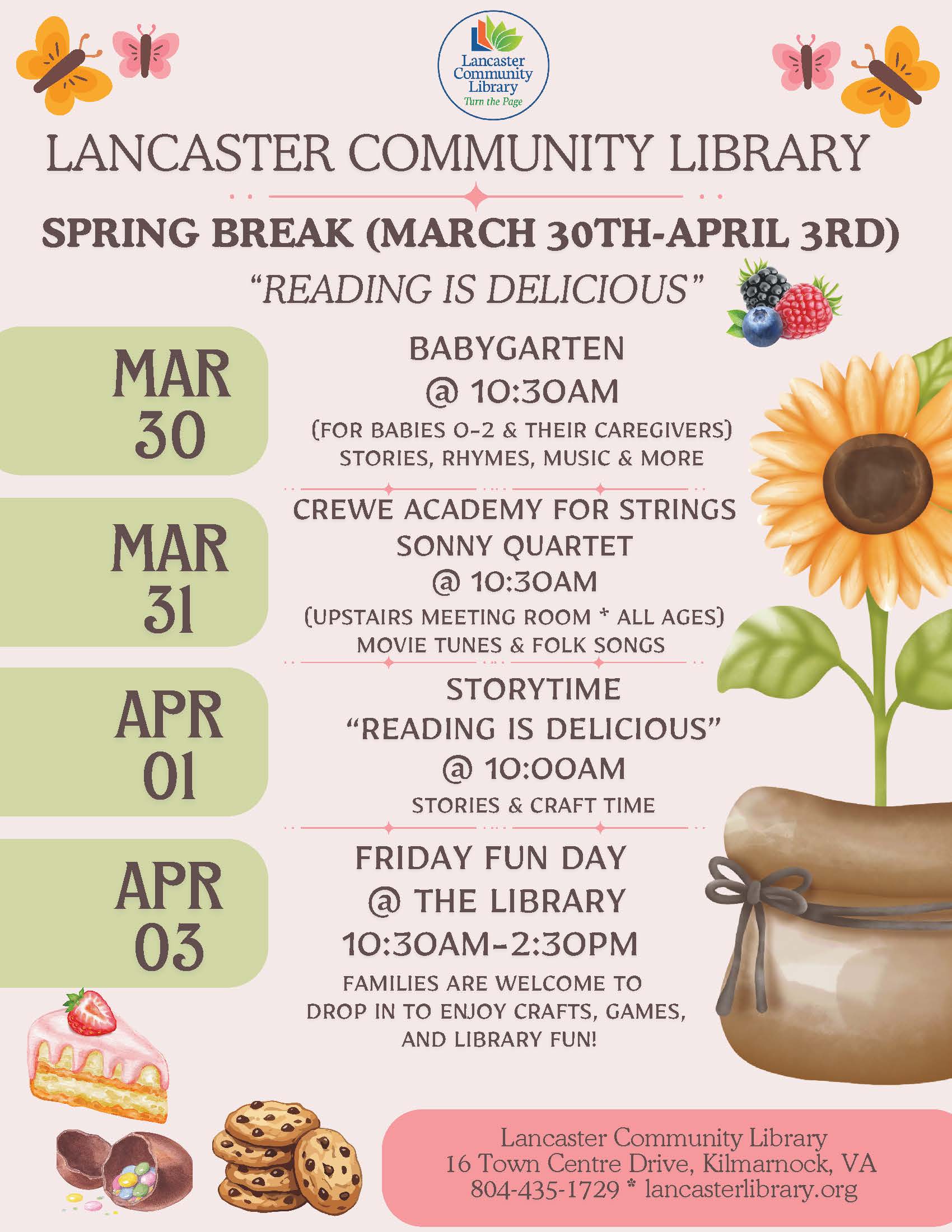 • April 1 – Storytime: “Reading is Delicious” (10:00 AM)