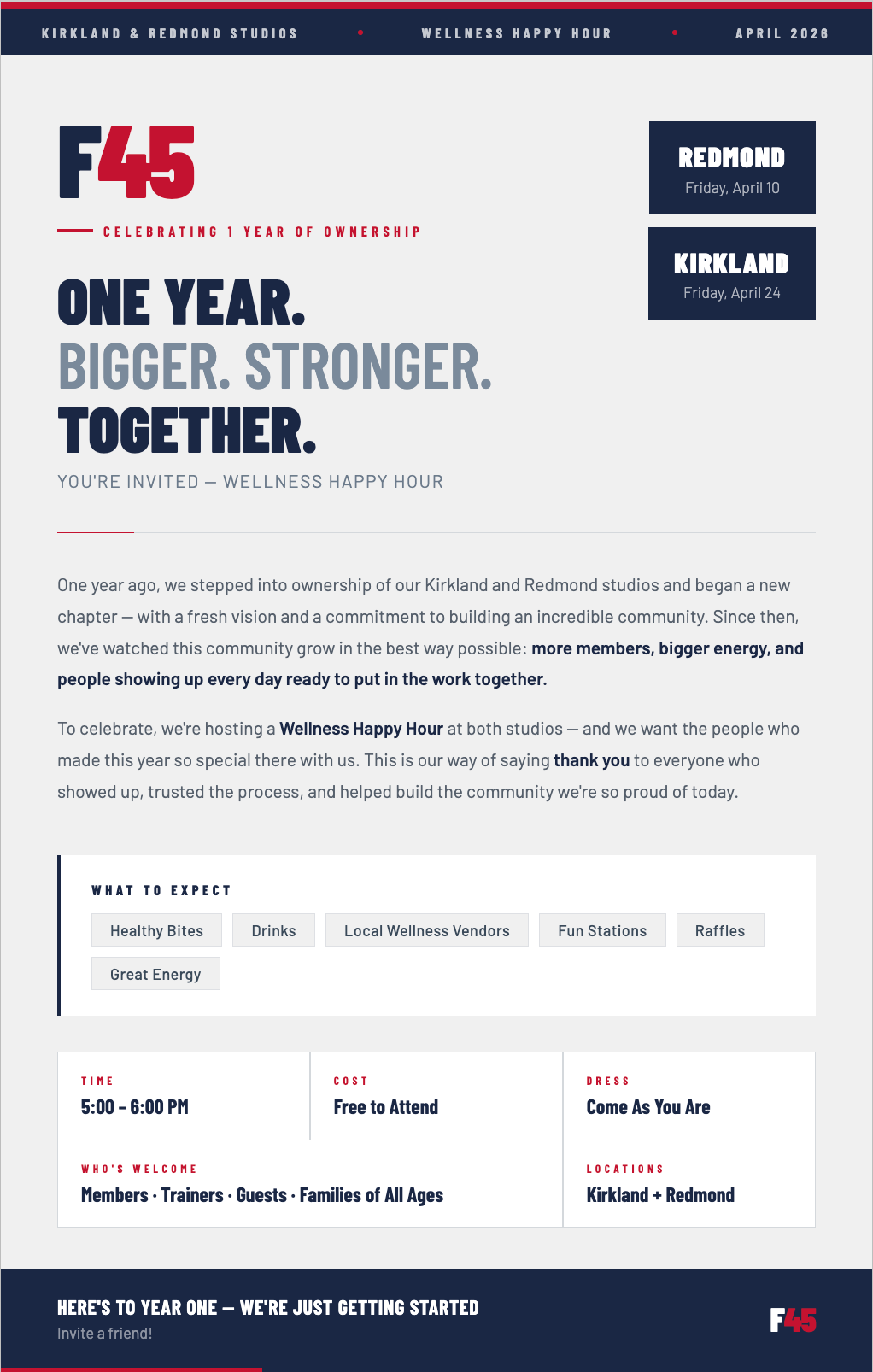 As Makenna and Sean head into their second year of owning F45 Downtown Kirkalnd, one of their biggest goals it to continue building stronger relationships with local wellness businesses and support each other in the community.