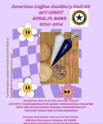 American Legion Auxiliary - Honoring Month of the Military Child! - cookie decorating lesson - 402 E. Narramore