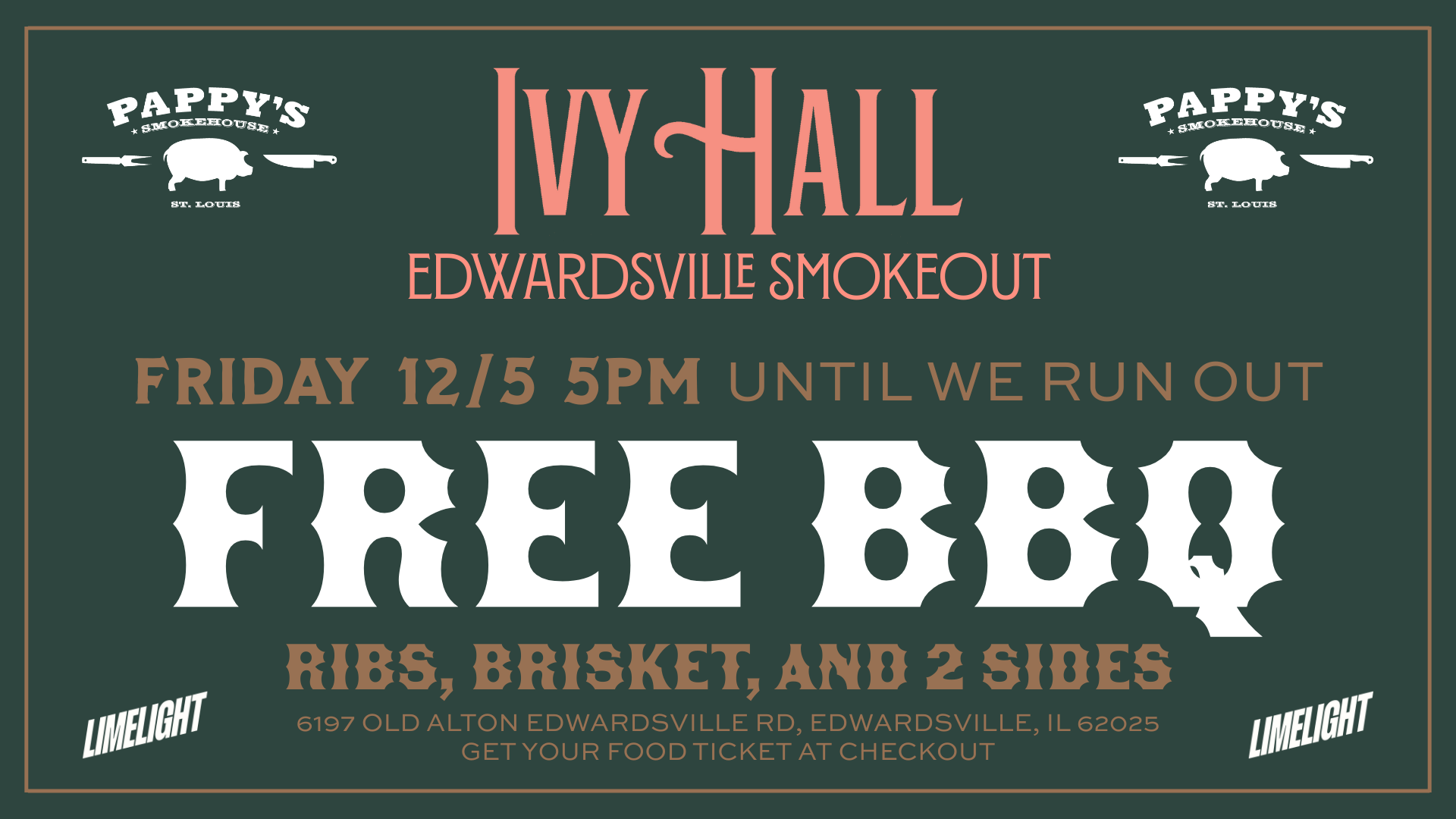 We appreciate YOU, our Ivy Hall Edwardsville community! Stop by this Friday, 12/5 at 5pm for the Ivy Hall Edwardsville Smokeout, REstock up all on your favorite goodies (because we know your Thanksgiving weekend was lit) and grab some *Pappy's BBQ on your way out. Pappy's will be posted up in our parking lot and open starting at 5pm UNTIL WE RUN OUT!