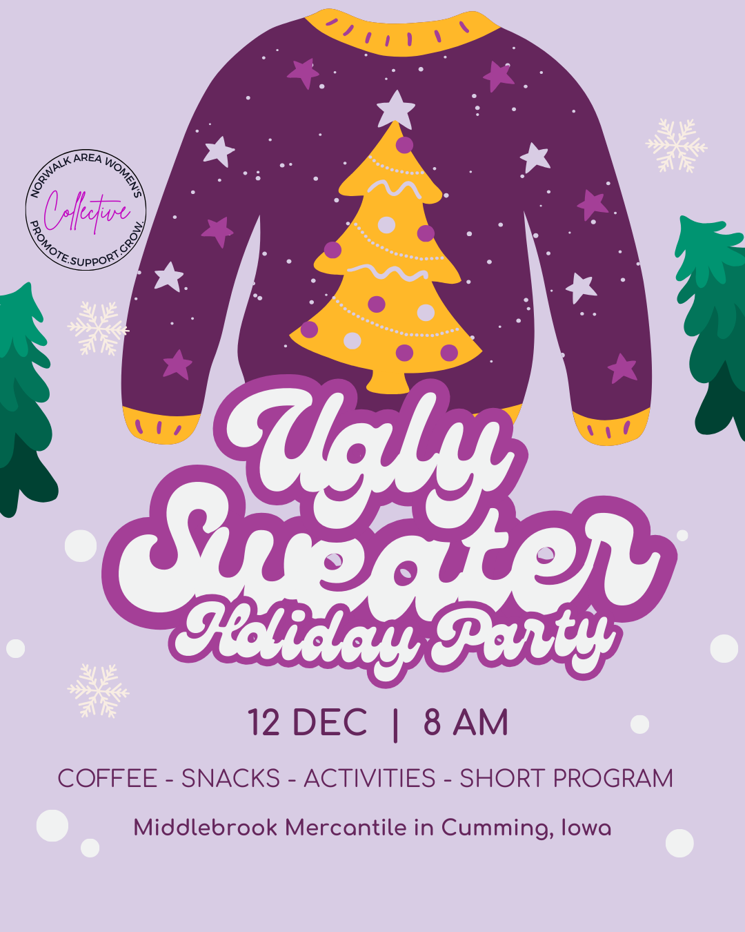 Grab your ugly holiday sweaters and join the Norwalk Area Women's Collective HOLIDAY PARTY for a festive morning of coffee, meaningful conversations, activities and a few surprises.