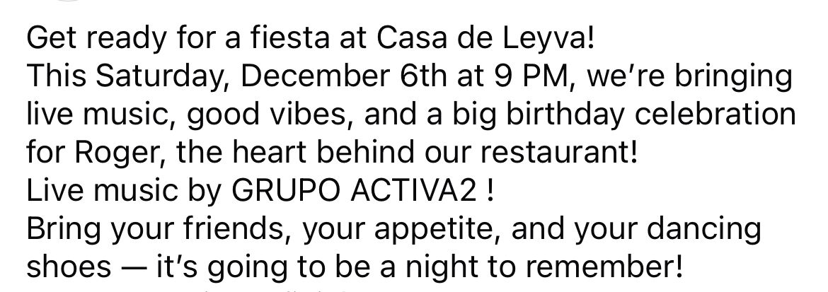 Casa de Leyva - Roger's Birthday Celebration - Live music by Grupo Activa2! - 424 E. Monroe Ave.