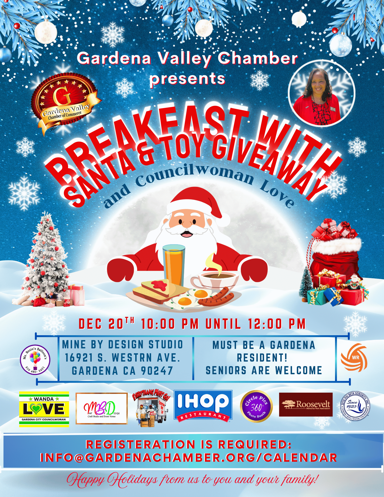 Gardena Chamber Breakfast & Toy Giveaway with Santa and Councilwoman Wanda Love