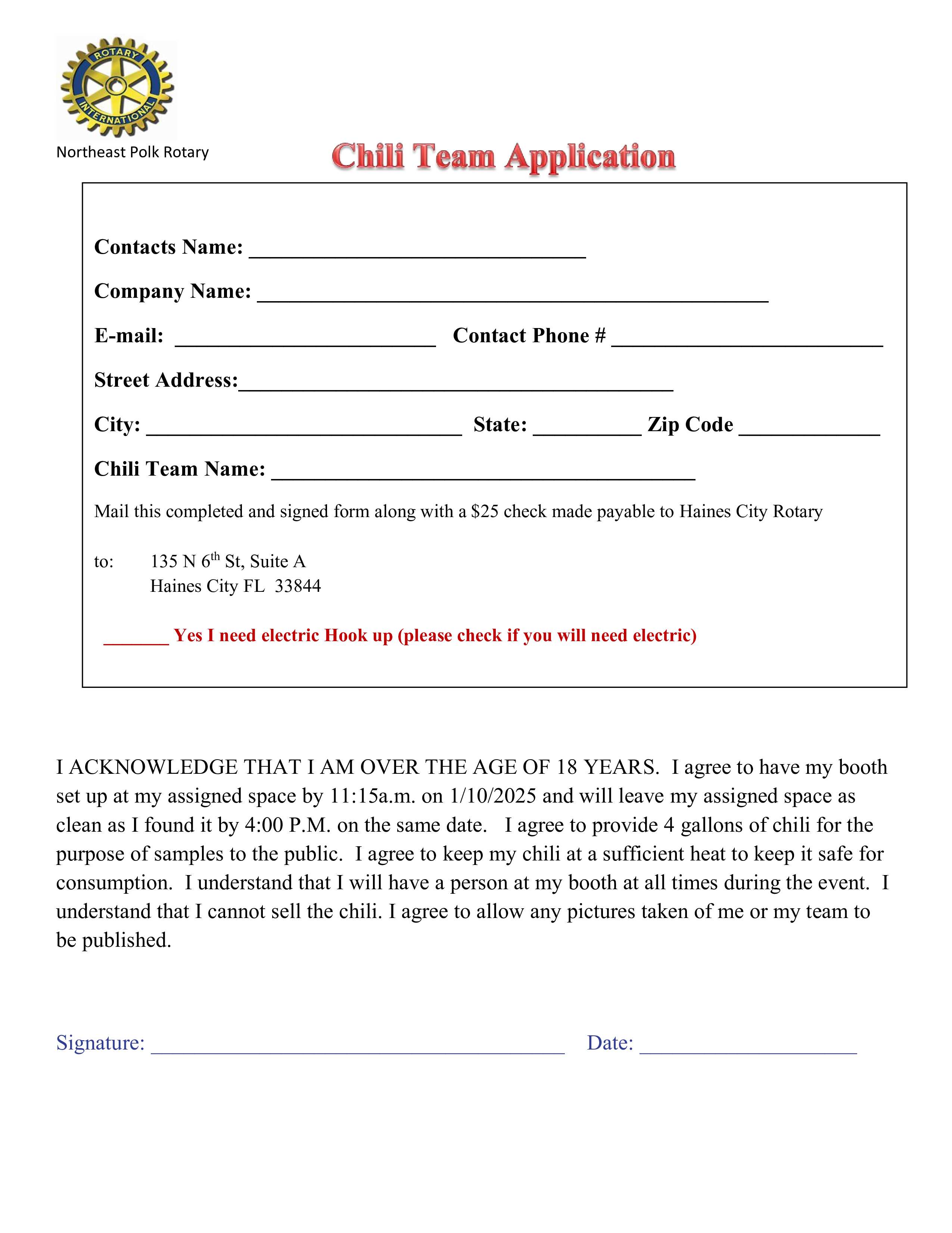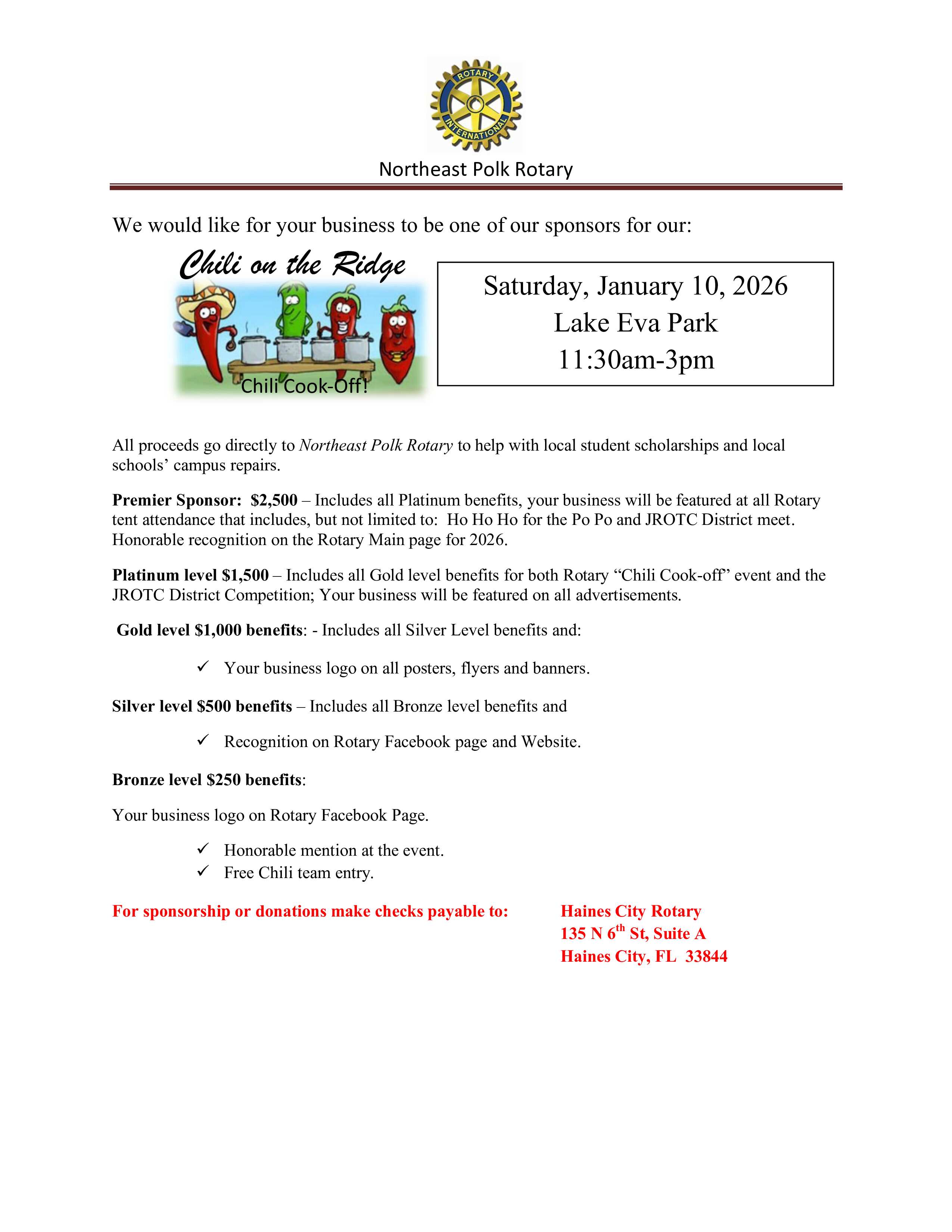 Register your team now for Haines City Rotary Northeast Polk Rotary's Chili on the Ridge Chili Cook-off!