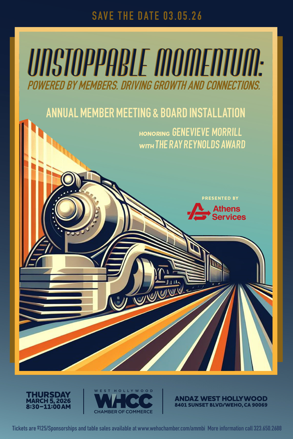 Elevate your brand, celebrate The Ray Reynolds Award Honoree Genevieve Morrill, and connect with West Hollywood’s business and civic leaders.