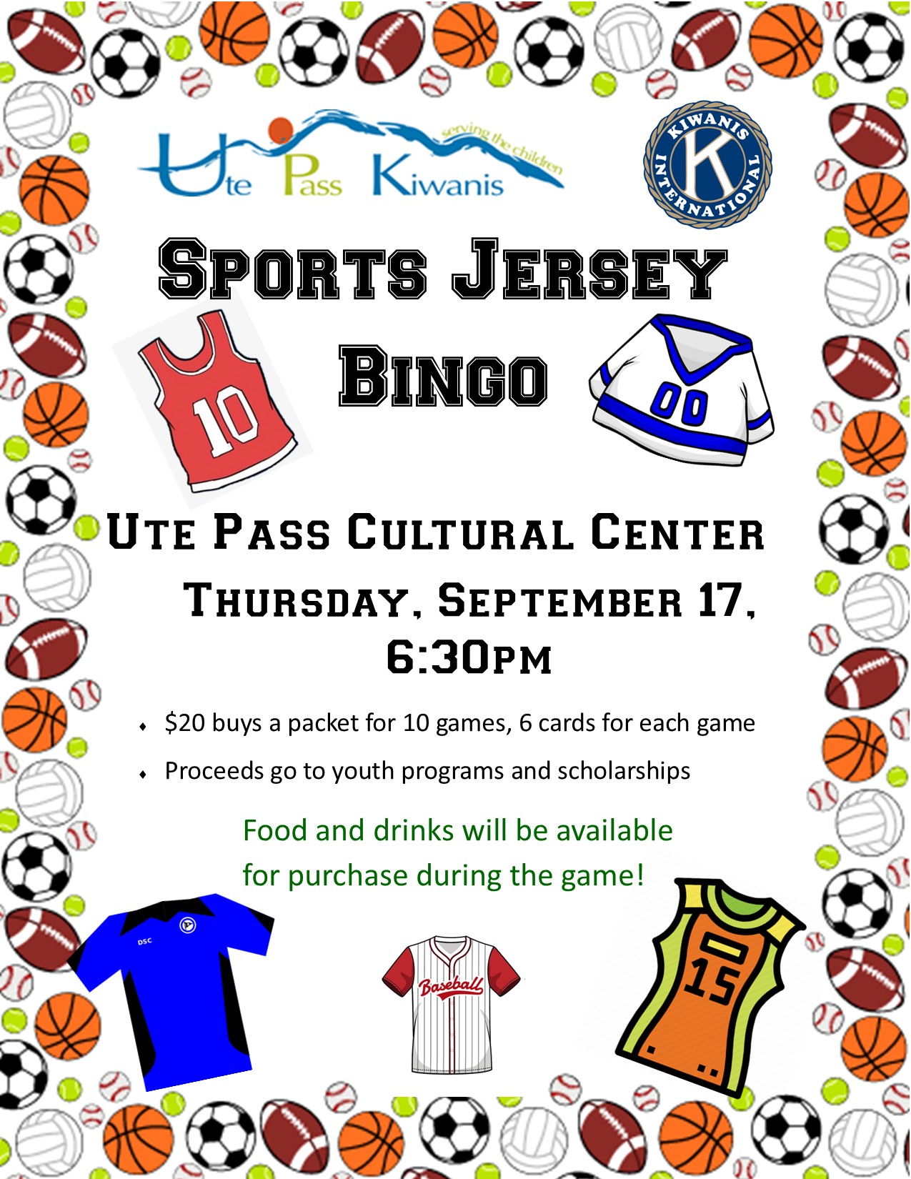 Ute Pass Kiwanis Sports Jersey Bingo