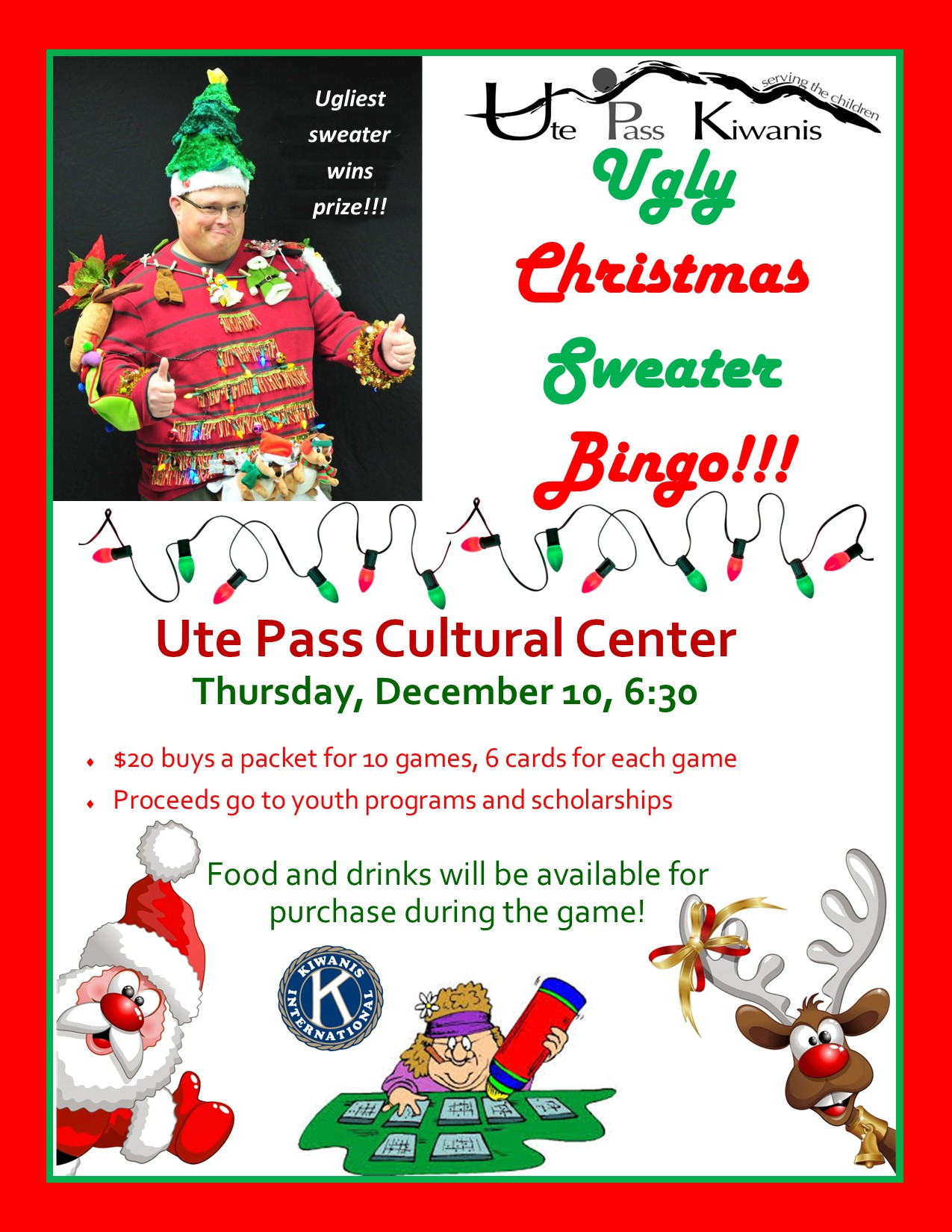 Ute Pass Kiwanis Ugly Christmas Sweater Bingo