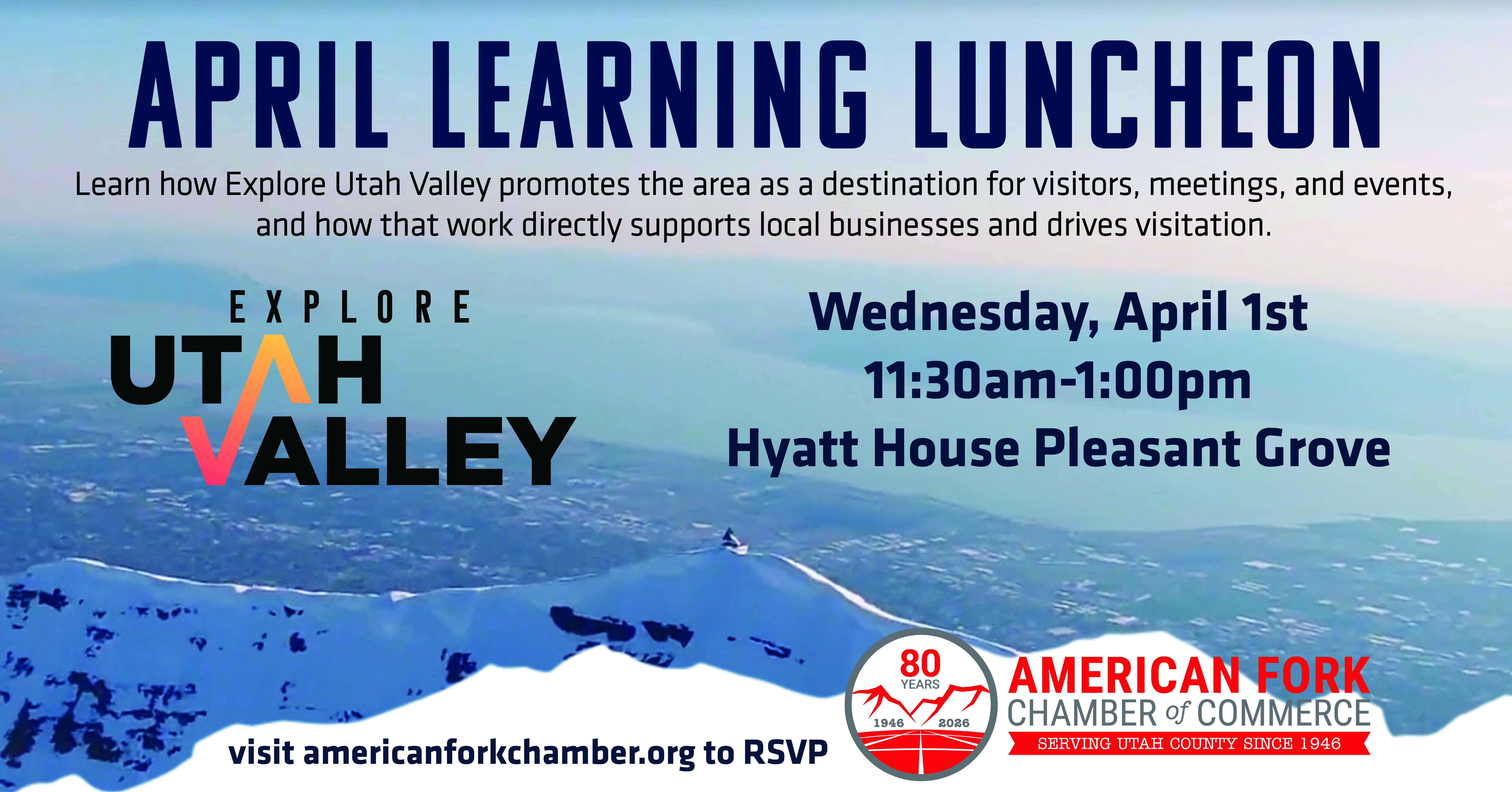 Join us for our April Learning Luncheon as we welcome representatives from Explore Utah Valley to share how destination marketing plays a critical role in strengthening our local economy.