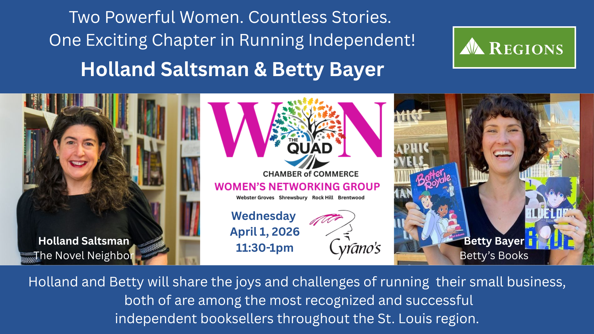 Independent bookstore owners Holland Saltsman from the Novel Neighbor and Betty Bayer of Betty’s Books. Just in time for April 25th which is National Independent Bookstore Day. Holland and Betty will share the joys and challenges of running a small business that happens to be an independent bookstore, PLUS how their bookstores can help support other local businesses – just like YOURS. Don’t miss it!
