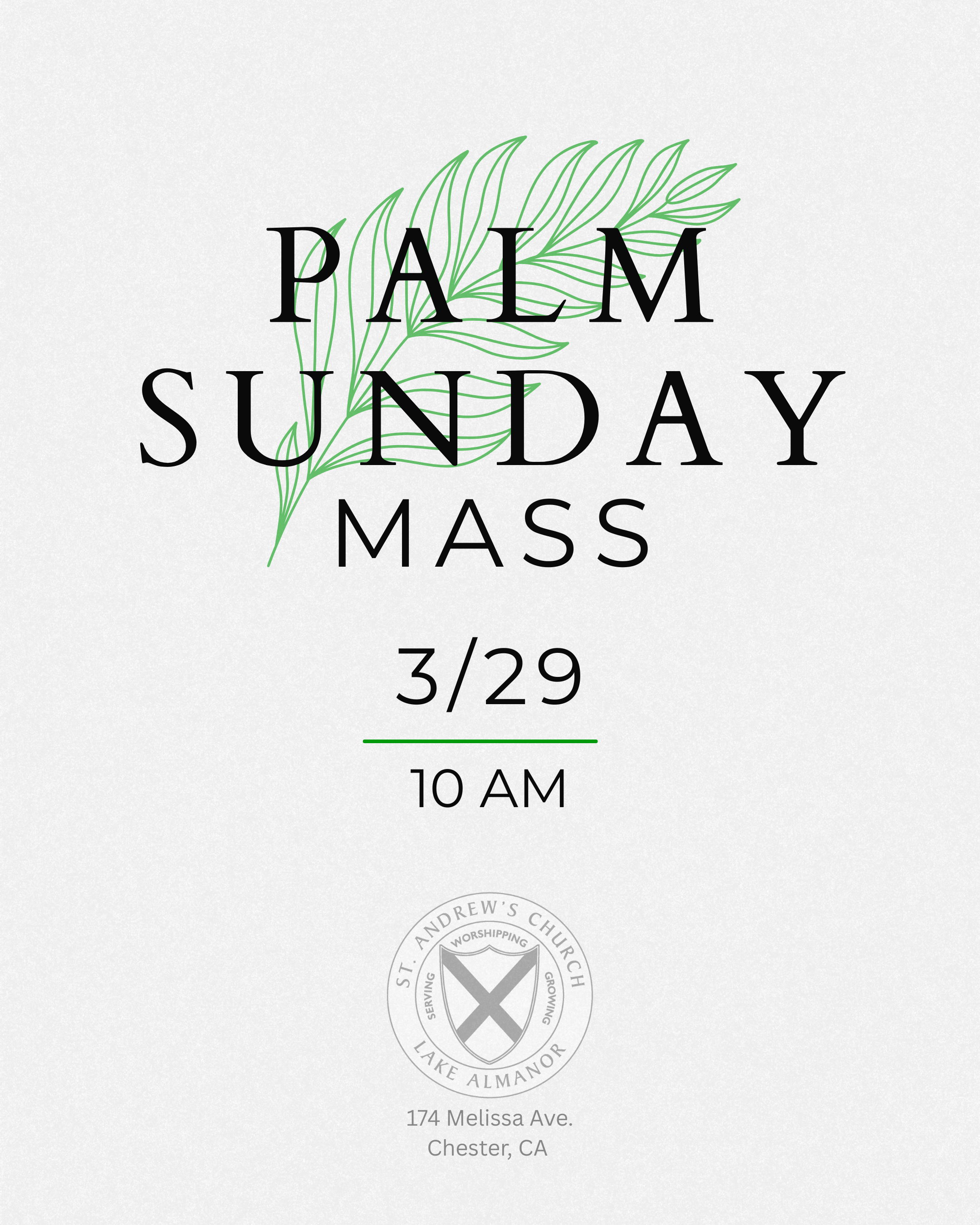 Palm Sunday marks the beginning of Holy Week. It is a time for reflection, reverence, and anticipation of the Paschal Mystery, which includes the death, burial, and resurrection of Christ.