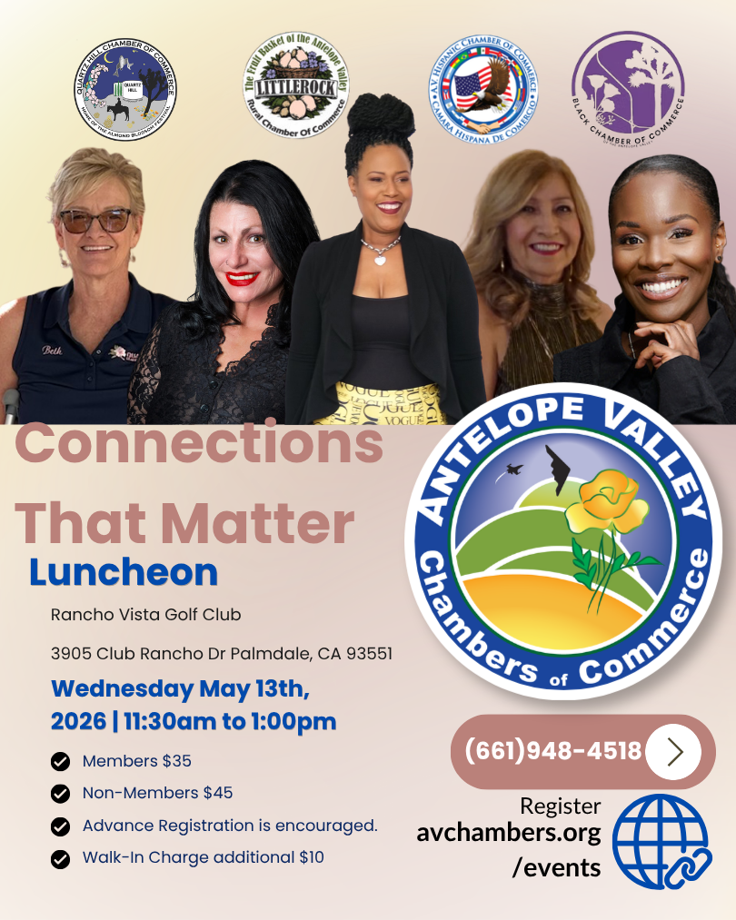 Join us for a landmark event as we celebrate the power of community, leadership, and the women who drive the Antelope Valley forward. This May, we are breaking down silos and building bridges at our Connections that Matter luncheon.