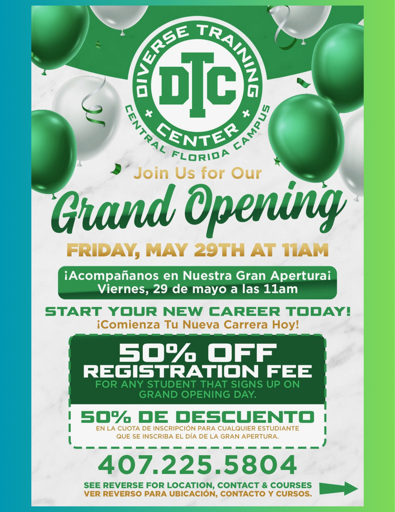Event Name:Grand Opening and Registration Special for Diverse Training Center