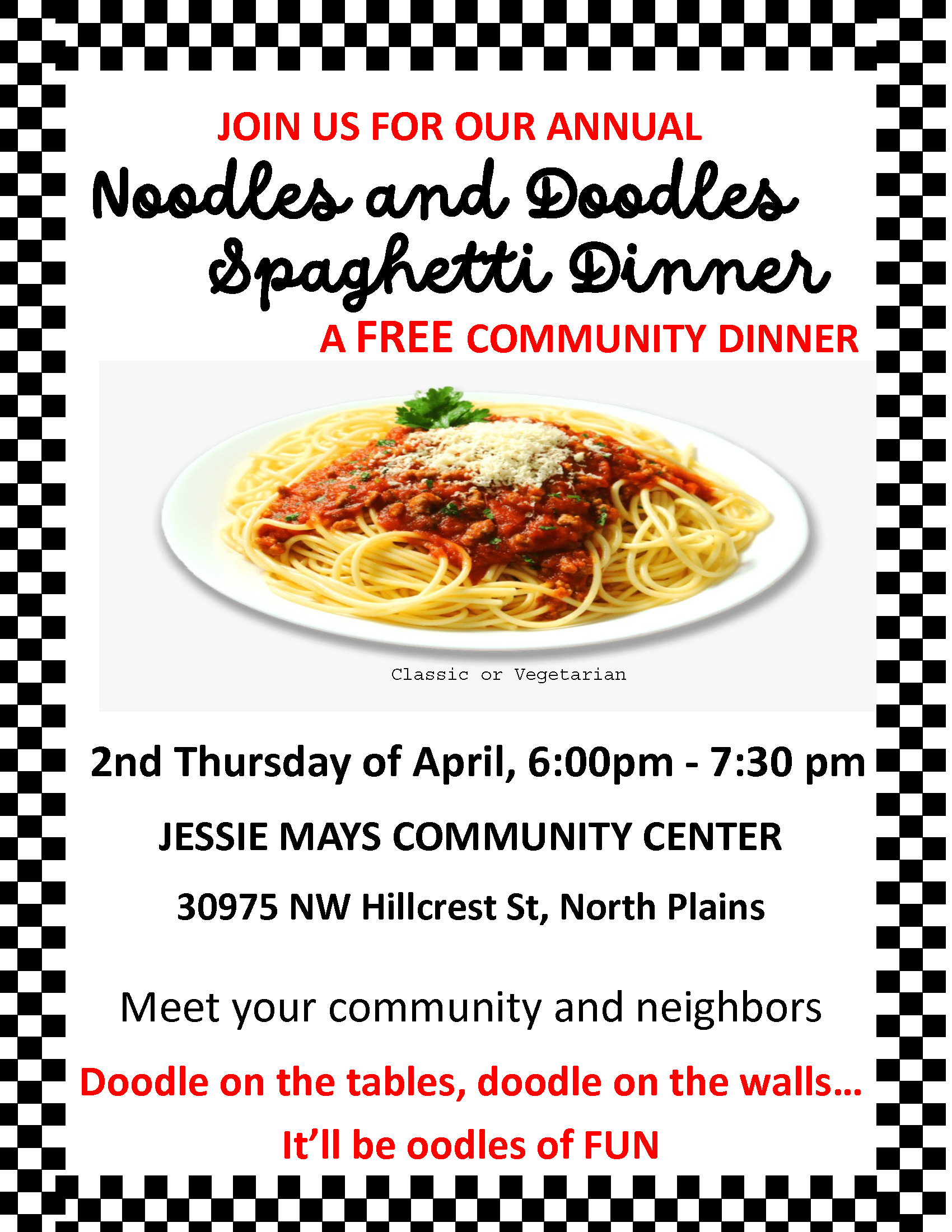 Noodles and Doodles Spaghetti Dinner-A FREE Community Dinner
