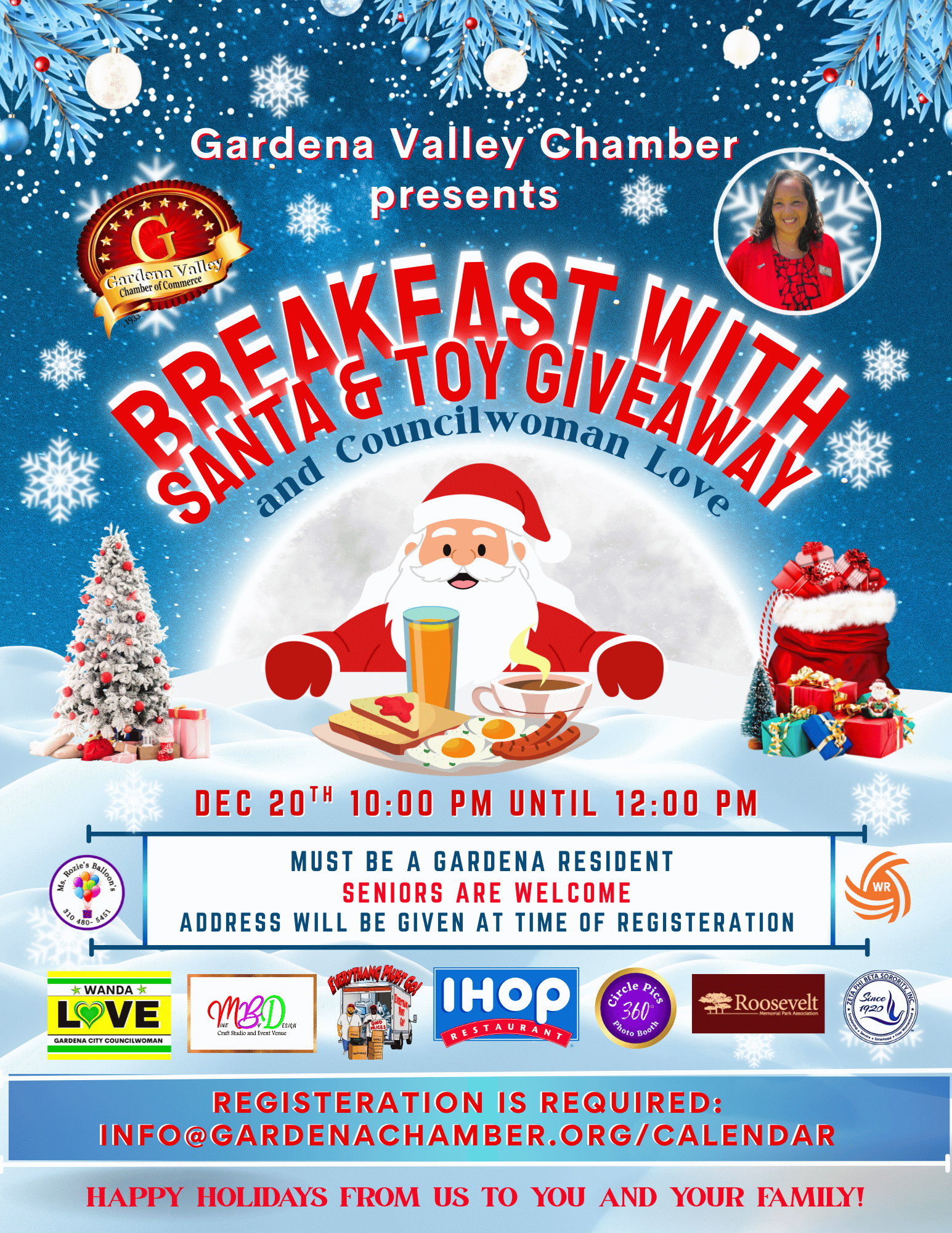 Gardena Chamber Breakfast & Toy Giveaway with Santa and Councilwoman Wanda Love