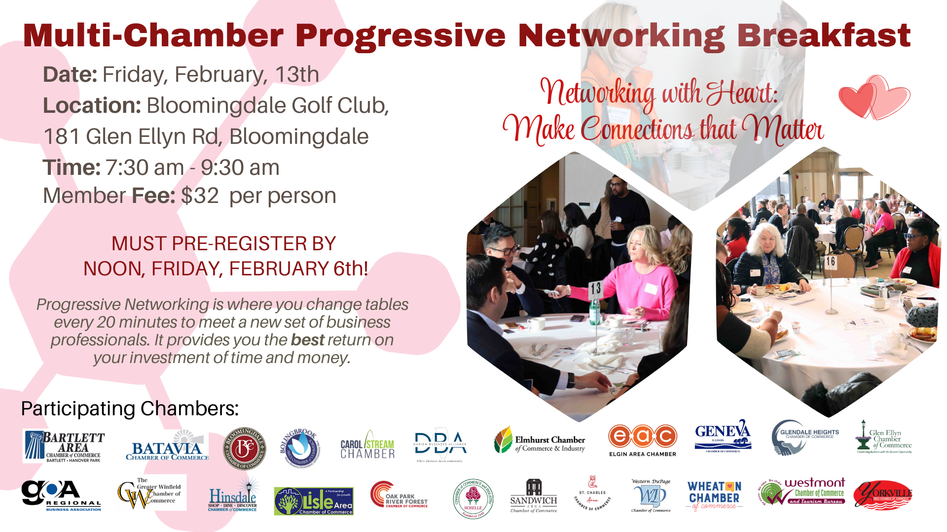 Join us for a dynamic morning of networking over a delicious breakfast buffet. Connect with fellow Chamber members and local business professionals in a fast-paced, structured format. Participants will rotate tables every 20 minutes, giving you the opportunity to meet a wide variety of contacts in a short amount of time.