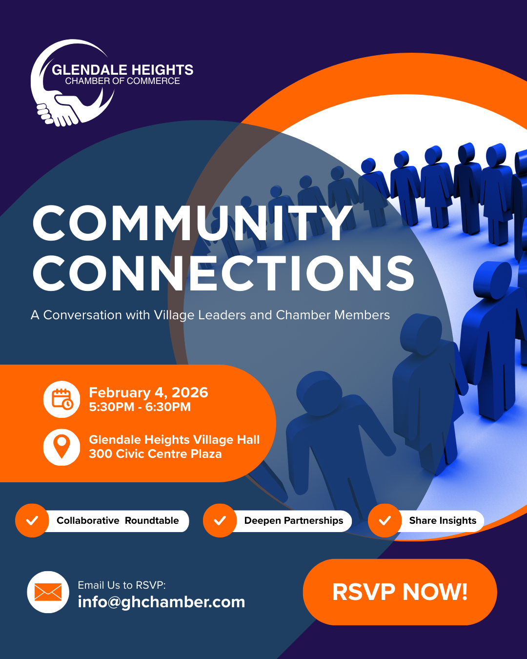 You are invited to join us for an exclusive Chamber of Commerce roundtable bringing together our upper-tier Chamber sponsors and representatives from Village government. This collaborative event is designed to strengthen communication, foster meaningful connections, and provide a forum for open dialogue about current initiatives and community priorities.