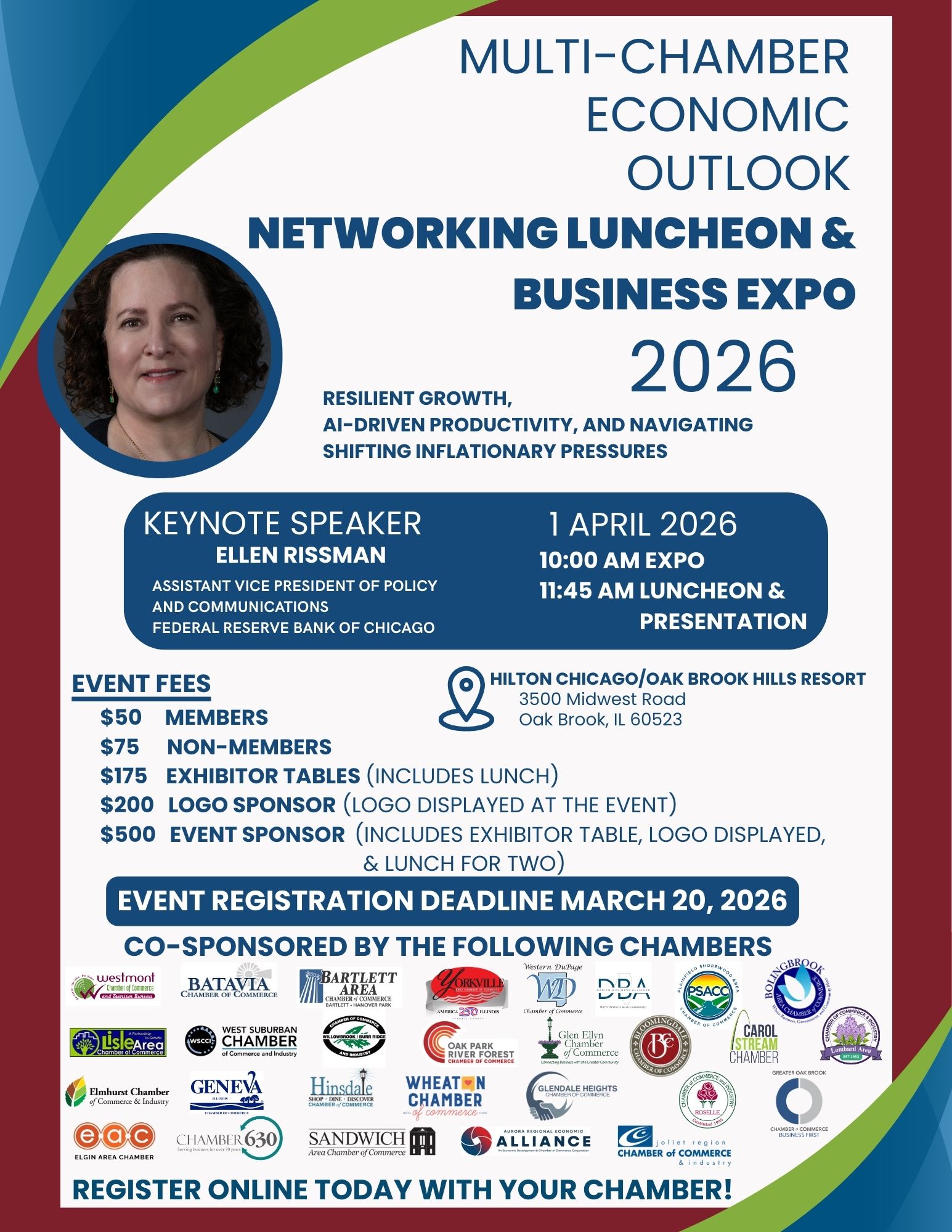 Join us at our annual Multi-Chamber Economic Outlook and Business Expo Luncheon on Wednesday, April 1 at the Hilton Chicago/Oak Brook Hills Resort.