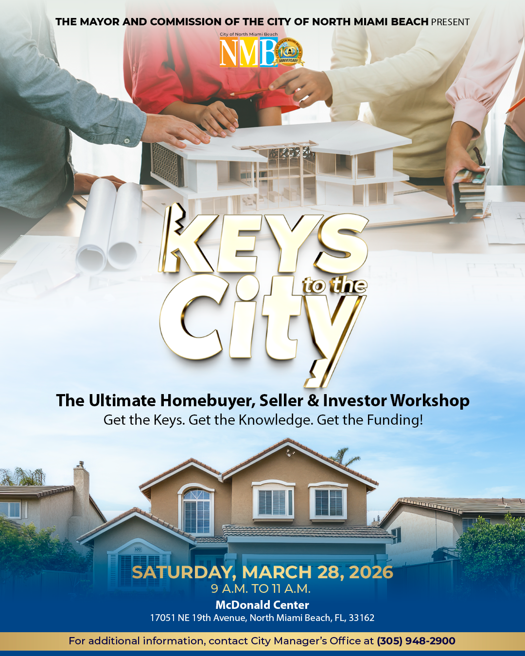 The Mayor and Commission of the City of North Miami Beach invite you to Keys to the City: The Ultimate Homebuyer, Seller, and Investor Workshop — a powerful event designed to help residents; future homeowners, businesses and investors learn how to build wealth and navigate the housing market.