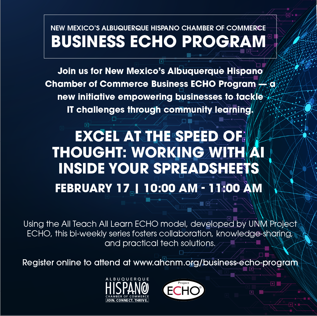 Join us for New Mexico's Albuquerque Hispano Chamber of Commerce Business ECHO Program - a new initiative empowering businesses to tackle IT challenges through community learning.